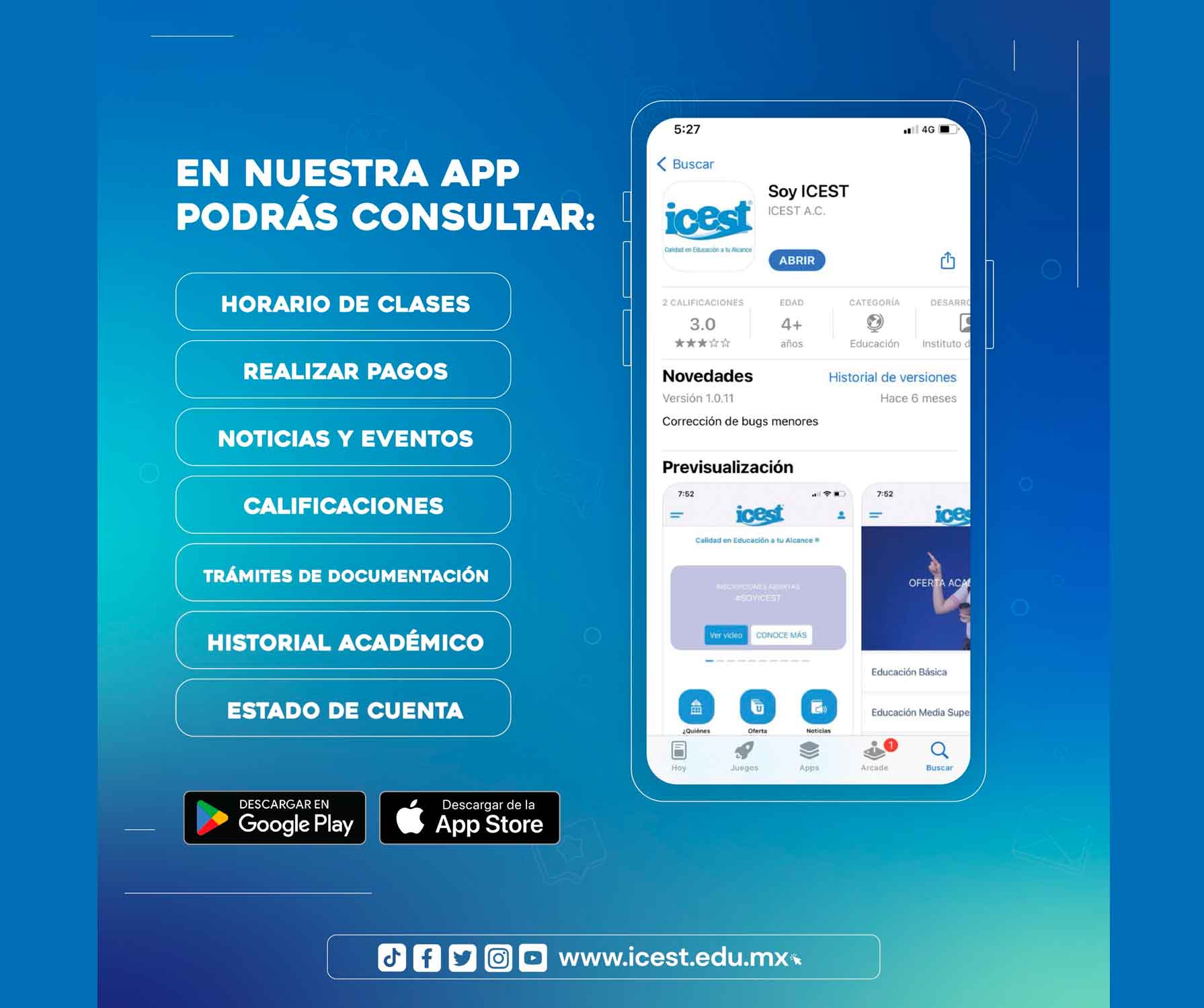 En el Instituto de Ciencias y Estudios Superiores de Tamaulipas, A. C. privilegiamos la tecnología accesible a toda nuestra comunidad para facilitar acciones que los mantengan informados y actualizados.