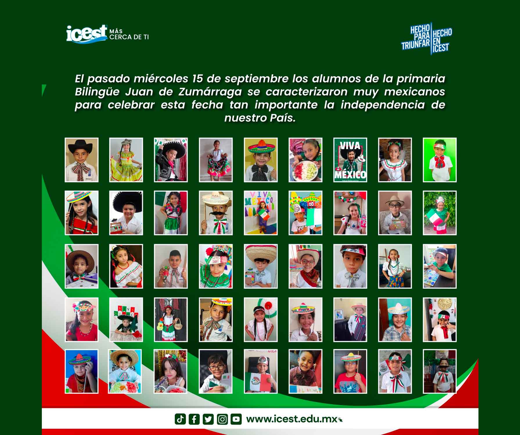 El Instituto de Ciencias y Estudios Superiores de Tamaulipas, A. C., fomenta en sus estudiantes desde nivel básico, valores como el amor a la patria con actividades culturales y sociales.